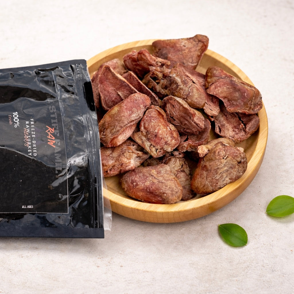 Turkey hearts are lean while packed with high quality protein, taurine for heart health, and vitamins, and nutrients.